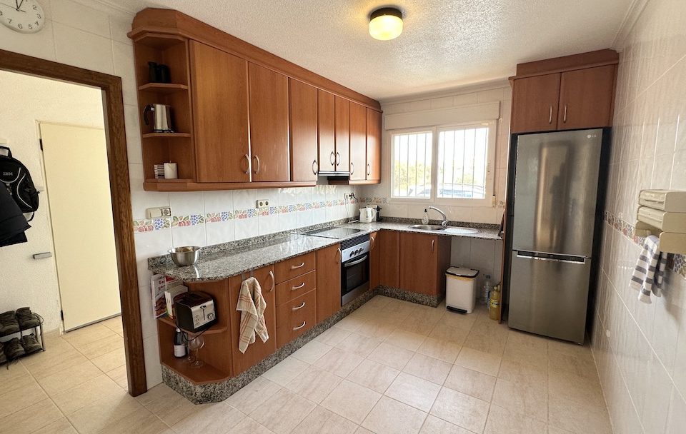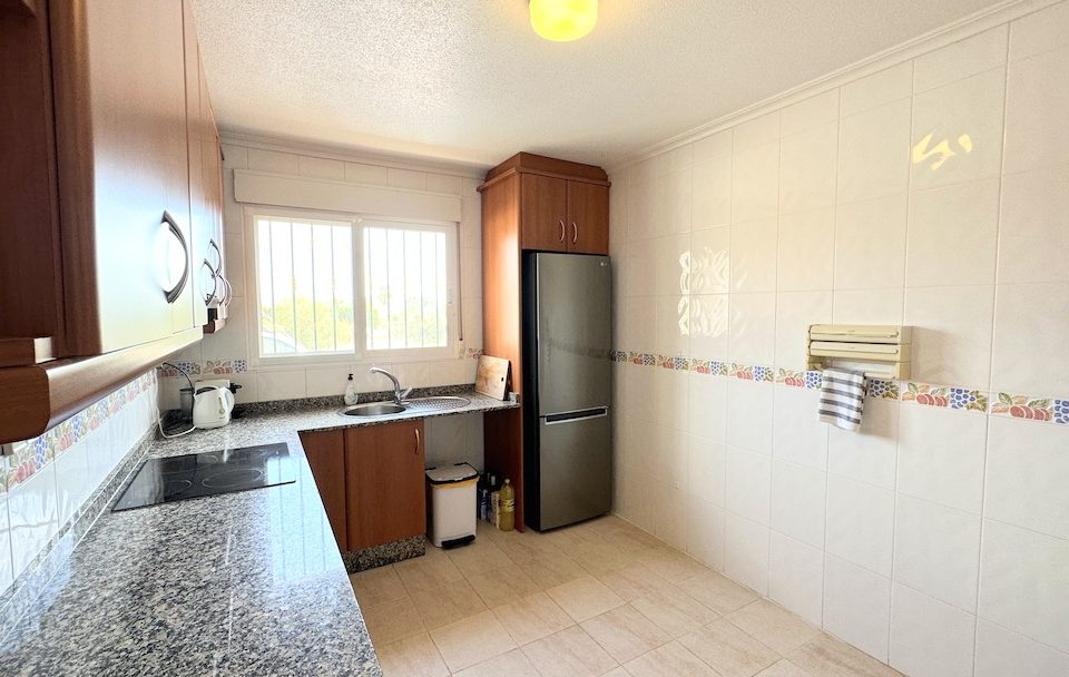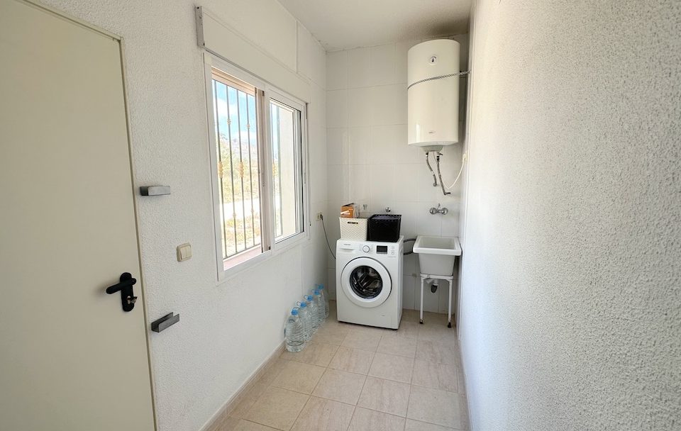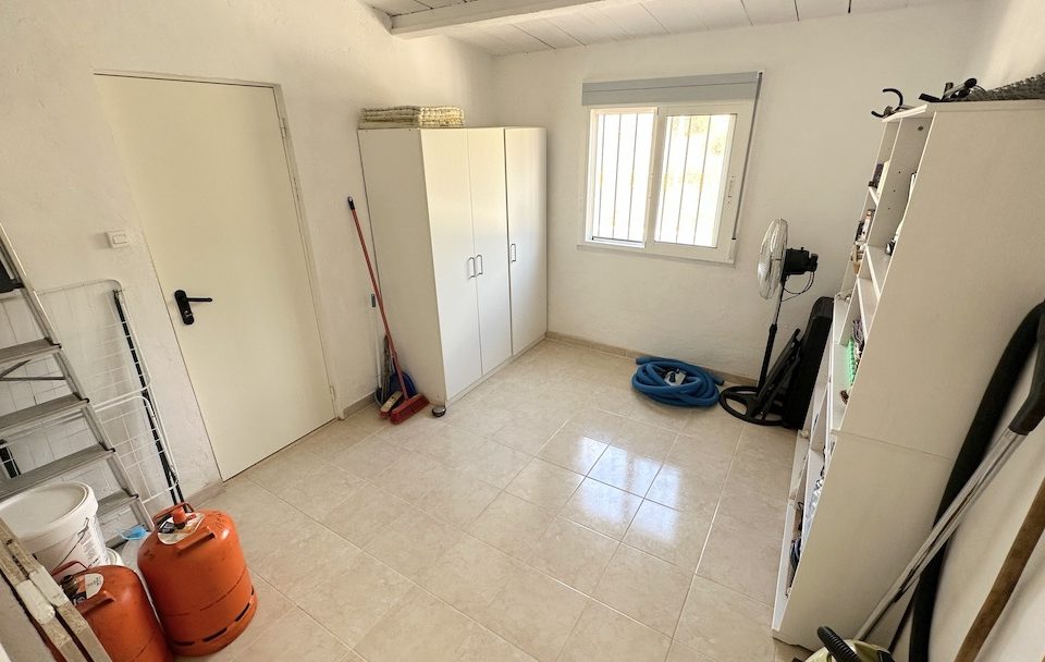 Die Villa verfügt über eine geräumige Küche mit großen Arbeitsflächen und viel Stauraum. Ein zusätzlicher Bonus ist das Vorhandensein von nicht nur einem, sondern zwei Abstellräumen. Der erste beherbergt die Waschmaschine und den Warmwassertank, während der zweite, großzügige 9 Quadratmeter große Raum als Abstellraum und Speisekammer dient.