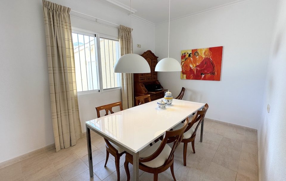 Diese Villa verfügt über vier großzügige Doppelschlafzimmer, wobei das vierte Schlafzimmer derzeit als Esszimmer genutzt wird. Das Hauptschlafzimmer verfügt über ein eigenes Bad, und ein weiteres Gästebad steht zur Verfügung.