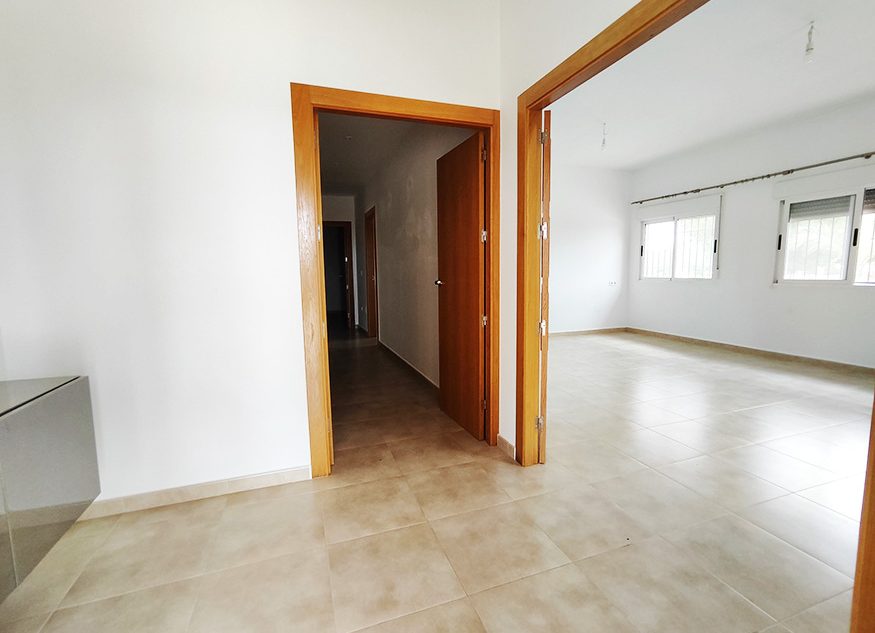 La vivenda tiene 150 m² construidos, mas 80 m² de terraza y porche, total 230 m². Consta de: salon-comedor con marco pequeño de madera que comunica a la cocina (para una mayor comodidad), cocina, lavadero, vestíbulo con pasillo amplio, tres dormitorios (uno de ellos doble) con armarios empotrados, tres baños (uno privado en dormitorio grande), preinstalación de aire acondicionado y calefacción con salidas por toda la vivienda, y un porche de 80 m² con balconera que rodea la vivienda. 5 farolas de alumbrado exterior y 9 perimetrales en las paredes de la vivienda.