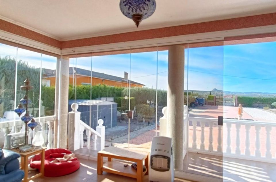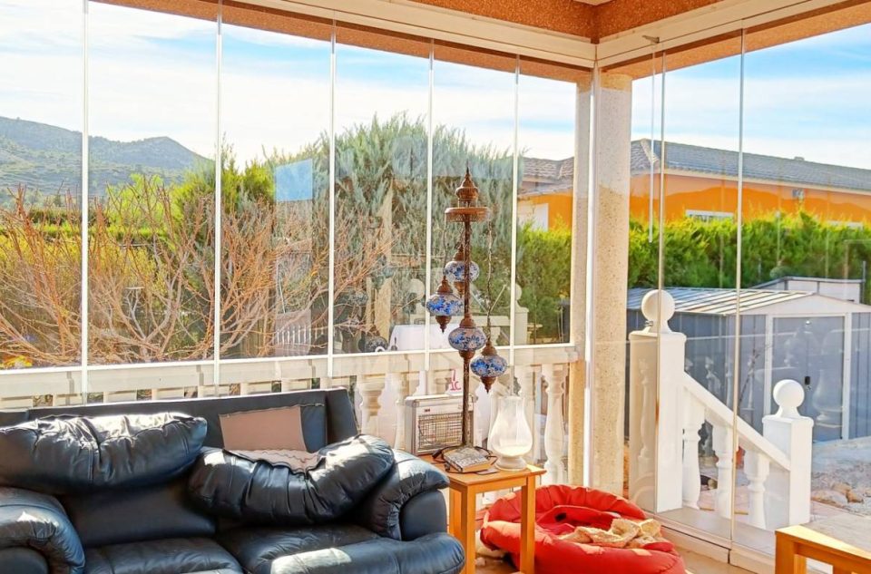 Al entrar en la propiedad nos recibe un gran porche acristalado, ideal para disfrutar de las vistas durante todo el año y crear un espacio luminoso y acogedor desde el primer momento.