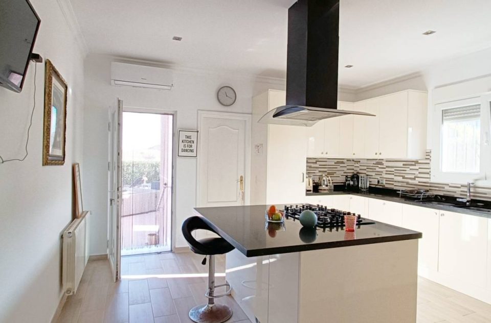 Moderna cocina con isla, totalmente reformada, con despensa y lavadero.