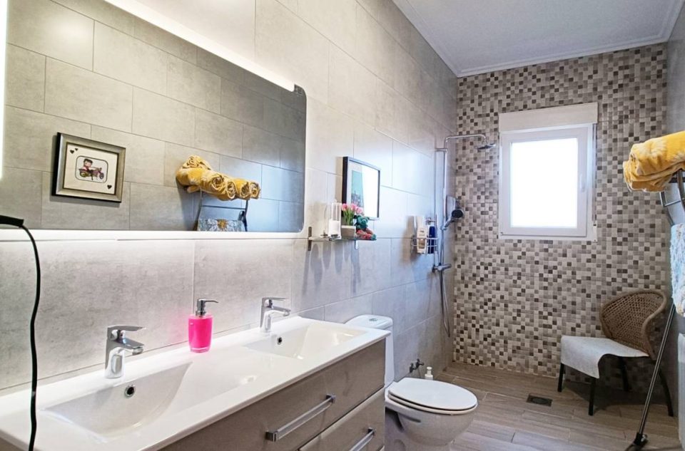 La villa cuenta con 4 amplios y luminosos dormitorios, todos con armarios empotrados, y 3 baños, uno de ellos en suite.