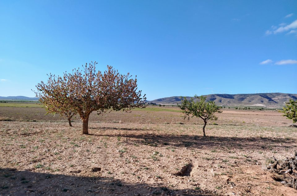 Le terrain autour de la maison s’étend sur 20 000 m². Le terrain de 40 000 m² se trouve à 600 mètres de la maison. Les autres parcelles sont réparties dans un rayon de 600 mètres. Le terrain est plat et dépourvu de végétation. Le climat et le sol riche en minéraux se prêtent également très bien à la plantation d’oliviers et d’amandiers qui, une fois arrivés à maturité, ne nécessitent pas d’arrosage.