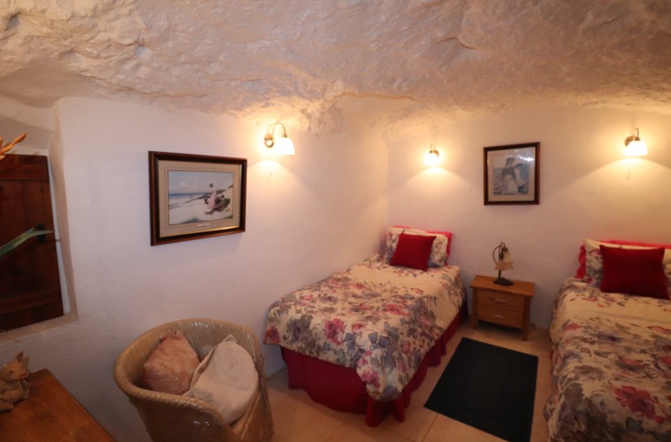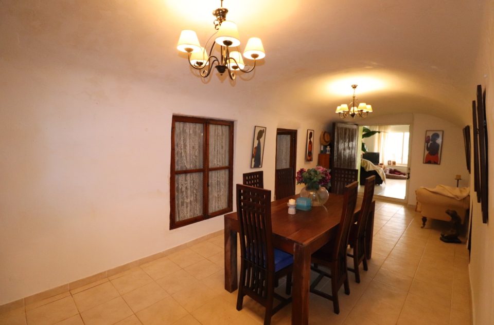 Cette très belle propriété se situe dans un superbe endroit tranquille à quelques minutes de voiture des 2 villages d’Hondon de las nieves et d’Hondon de los frailes aveec toutes les commodités. Il y a plus de 400m2 de surface construite comprenant la maison principale avec une partie cueva, un espace piscine avec terrasse couverte, cuisine d’été, local technique et toilette, des rangements, une buanderie ainsi qu’un double garage avec atelier qui pourrait facilement être transformé en appartement séparé. La maison principale se compose de plusieurs livings, salons, salle à manger, d’une cuisine équipée, d’un cellier et de 5 chambres et de 2 salles de bain. Les chambres sont dans la cueva ce qui apporte du charme et beaucoup nde fraicheur en été. Devant la maison, l’espace est occupé par une terrasse couverte et une spacieuse terrasse avec coin barbecue. La piscine est superbe et est située juste en face. La maison est connectée au réseau d’eau, d’électricité et dispose d’internet et d’un appareil d’air conditionné chaud/froid. C’est un bien rare, avec beaucoup de charme et qui doit être vu pour se rendre compte