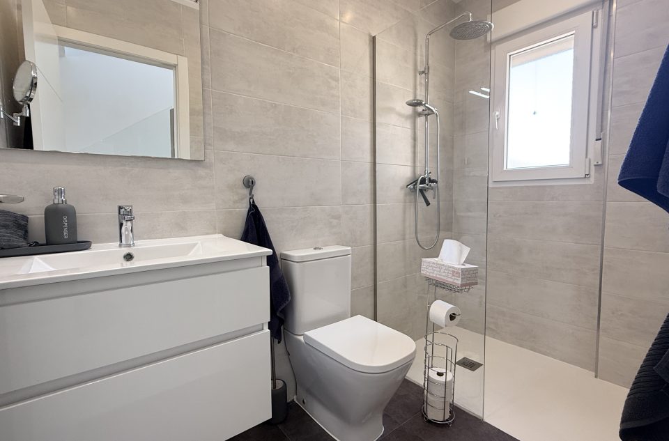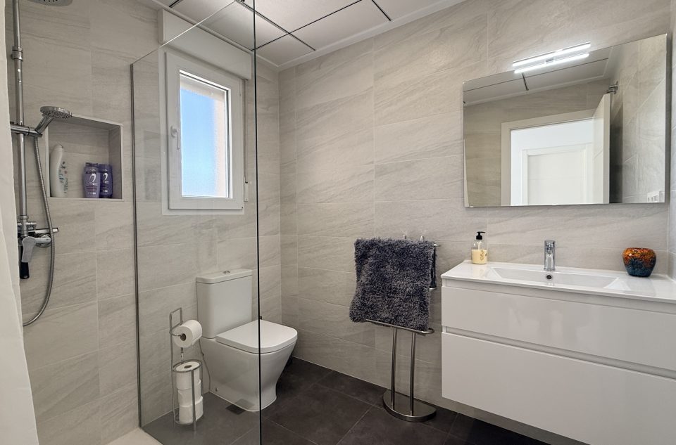 À l’étage, une grande fenêtre apporte une belle luminosité. La suite parentale dispose d’une terrasse privée, de nombreux rangements et d’une salle de bains avec douche et baignoire. Deux autres chambres disposent de balcons privés, ainsi qu’une salle de bains pour invités.