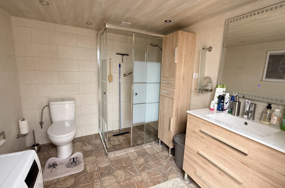 La villa dispose de trois chambres doubles, d’une salle de bain familiale, d’une cuisine de style rustique et d’un salon d’hiver. La naya vitrée est le véritable cœur de la maison, utilisable toute l’année.