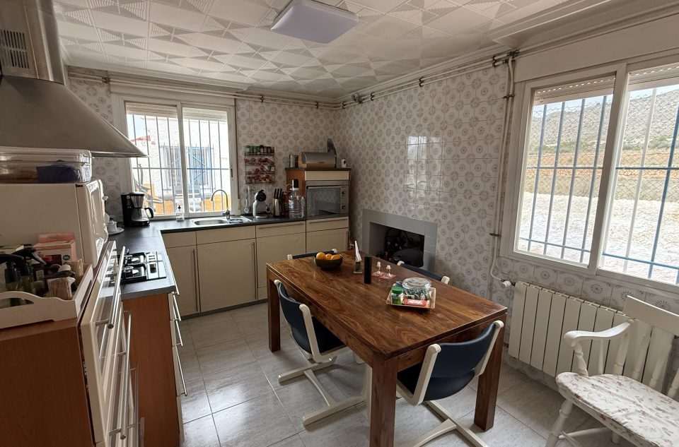 Implantée sur un terrain plat, surélevé et entièrement clôturé de plus de 3 500 m², cette villa orientée plein sud offre des vues panoramiques à 360° sur la vallée de Hondón, des falaises spectaculaires de la Sierra Algayat à la Sierra de Crevillente boisée.